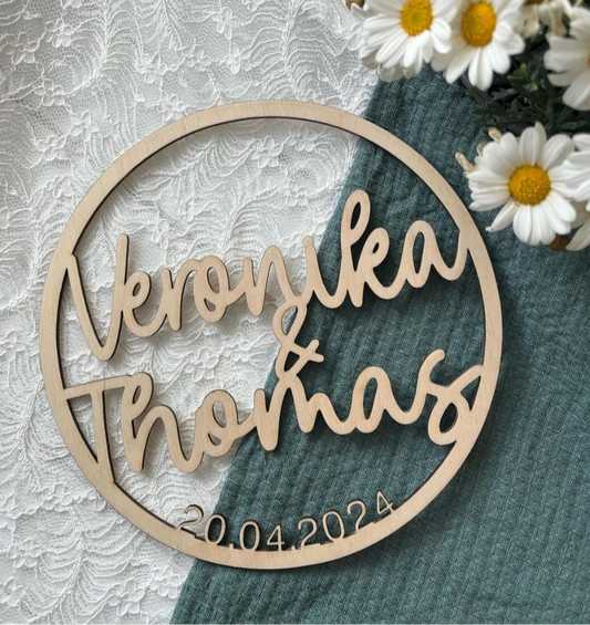 Personalisierter Holzkranz – Hochzeitsgeschenk mit Namen & Datum