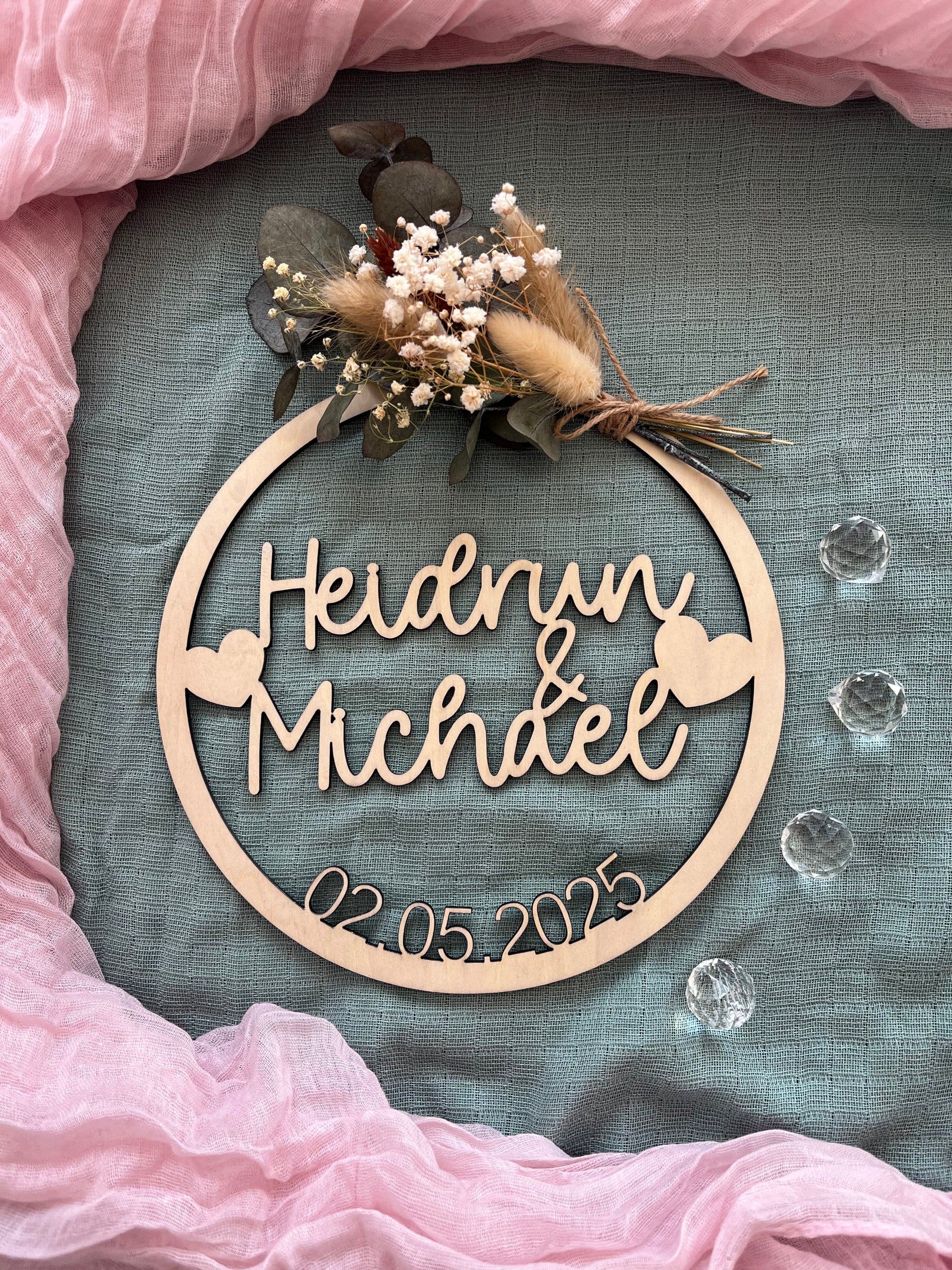 Personalisierter Holzkranz – Hochzeitsgeschenk mit Namen & Datum